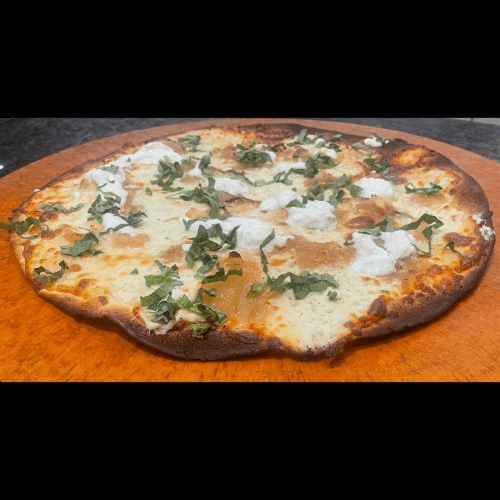 Classic white pizza with Mozzarella, Ricotta and garlic.