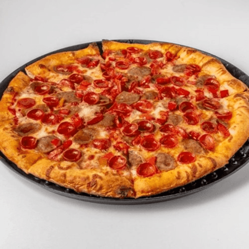 Our Meatlovers pizza made with pepperoni, sausage, ham and ground beef.