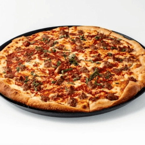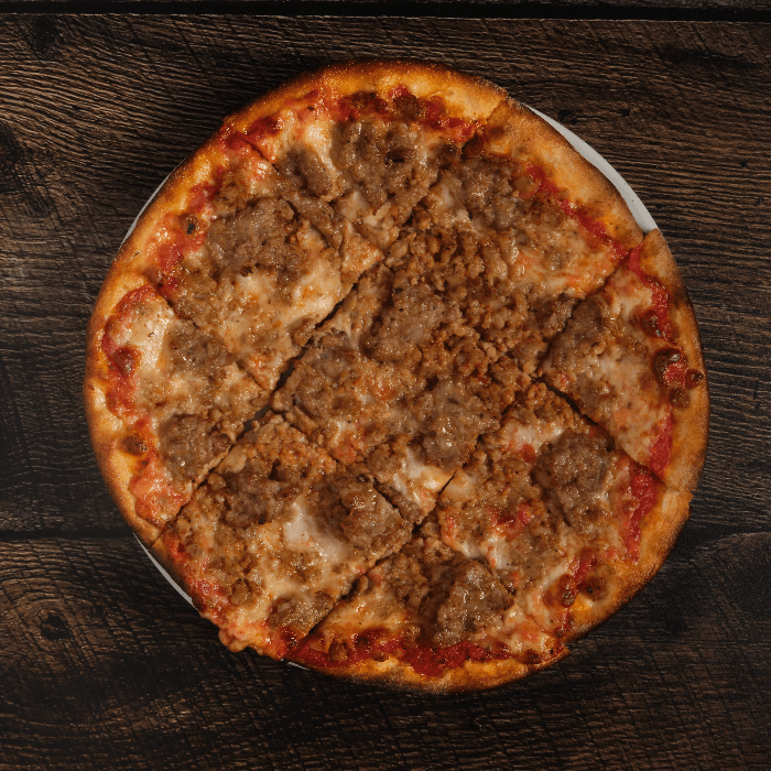 Italian sausage and garlic. Made with thick slices of Mozzarella, rich tomato sauce, fresh basil and extra virgin olive oil.