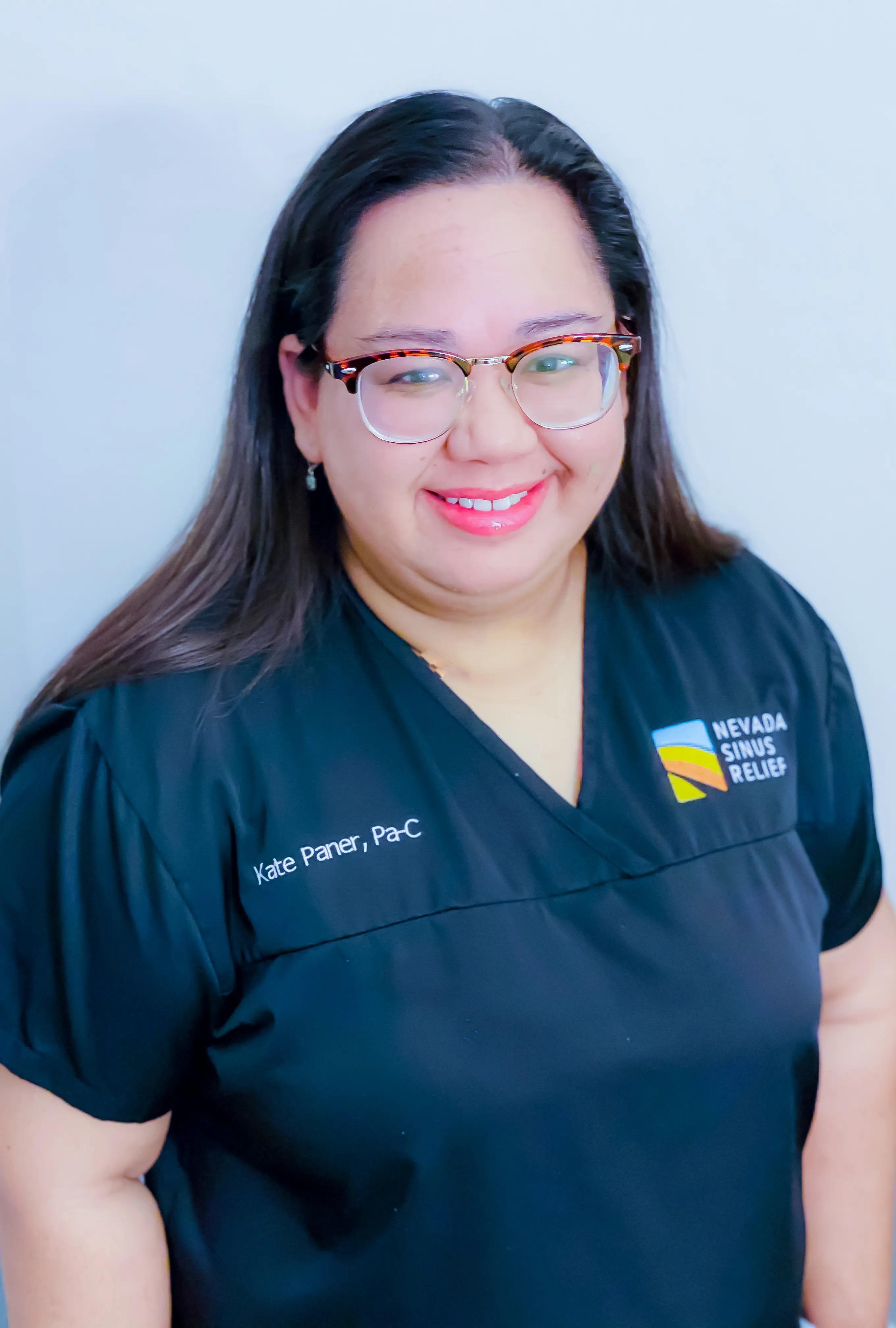 Kate Paner, MPAS, PA-C joined Nevada Sinus Relief in March of 2021. She previously worked in an allergy and immunology practice in Las Vegas for 11 years. Her knowledge of allergy and asthma conditions makes her an integral part of our team. Kate is originally from Santa Monica, CA. She attended University of California, San Diego and double majored in Human Biology and Psychology. She moved to Las Vegas in 2006 to attend Touro University Nevada where she received her master’s degree in Physician Assistant Studies. Read what our patients are saying! After two years of dealing with chronic sinus infections and no energy, I had the balloon sinus dilation procedure and within four days I was able to return to my workouts with tons of energy. Dr. Sikand is fantastic! Click here to read more reviews. Kate Paner, MPAS, PA-C is committed to educating patients and providing the highest quality of care. She can conduct physical exams to diagnose your condition ,and prescribe medications to treat your symptoms. Kate also has the ability to order and interpret tests including labs, cultures, and imaging studies. She also performs nasal endoscopies and as well as provide surgical assistance during office based procedures. Schedule a Consultation Today In her spare time, Kate enjoys spending time with her husband and two sons. She enjoys traveling, hiking, biking and trips to her favorite place in the world-Disneyland! She also enjoys going to back to visit her family and friends in California.