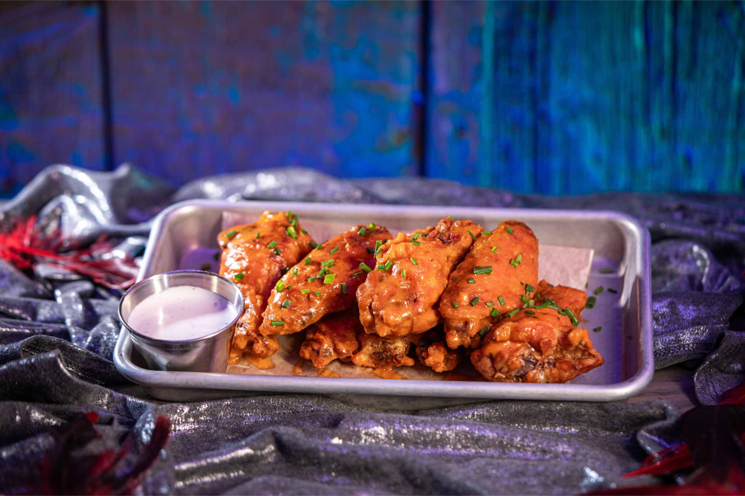 Choose a style: Hot Honey – crispy onion, ranch dressing Charred Lemon & Garlic – crispy onion, ranch dressing