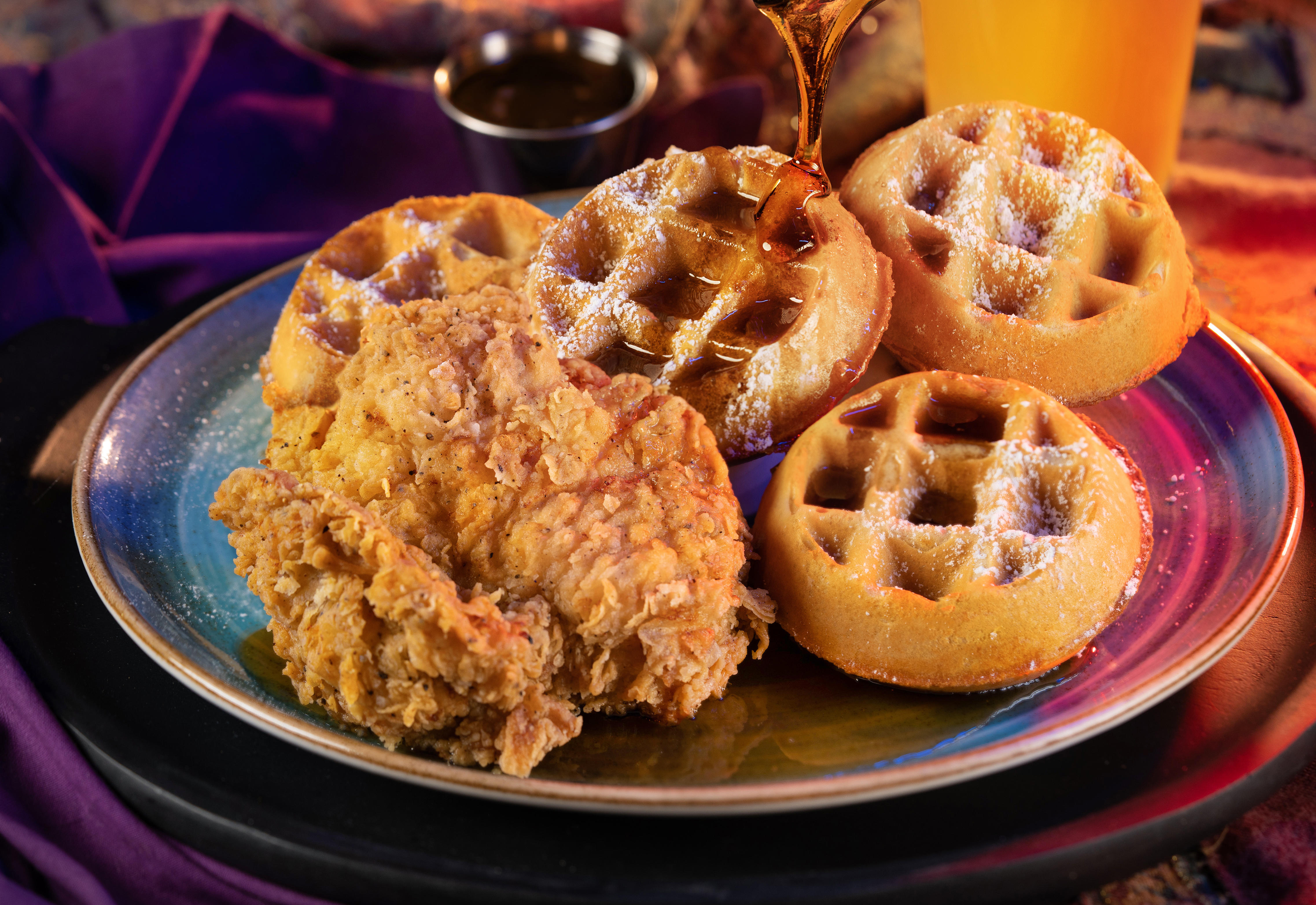 buttermilk biscuits, crispy chicken breast, cajun aioli, sawmill gravy, chamoy pineapple & watermelon, dusted with tajín