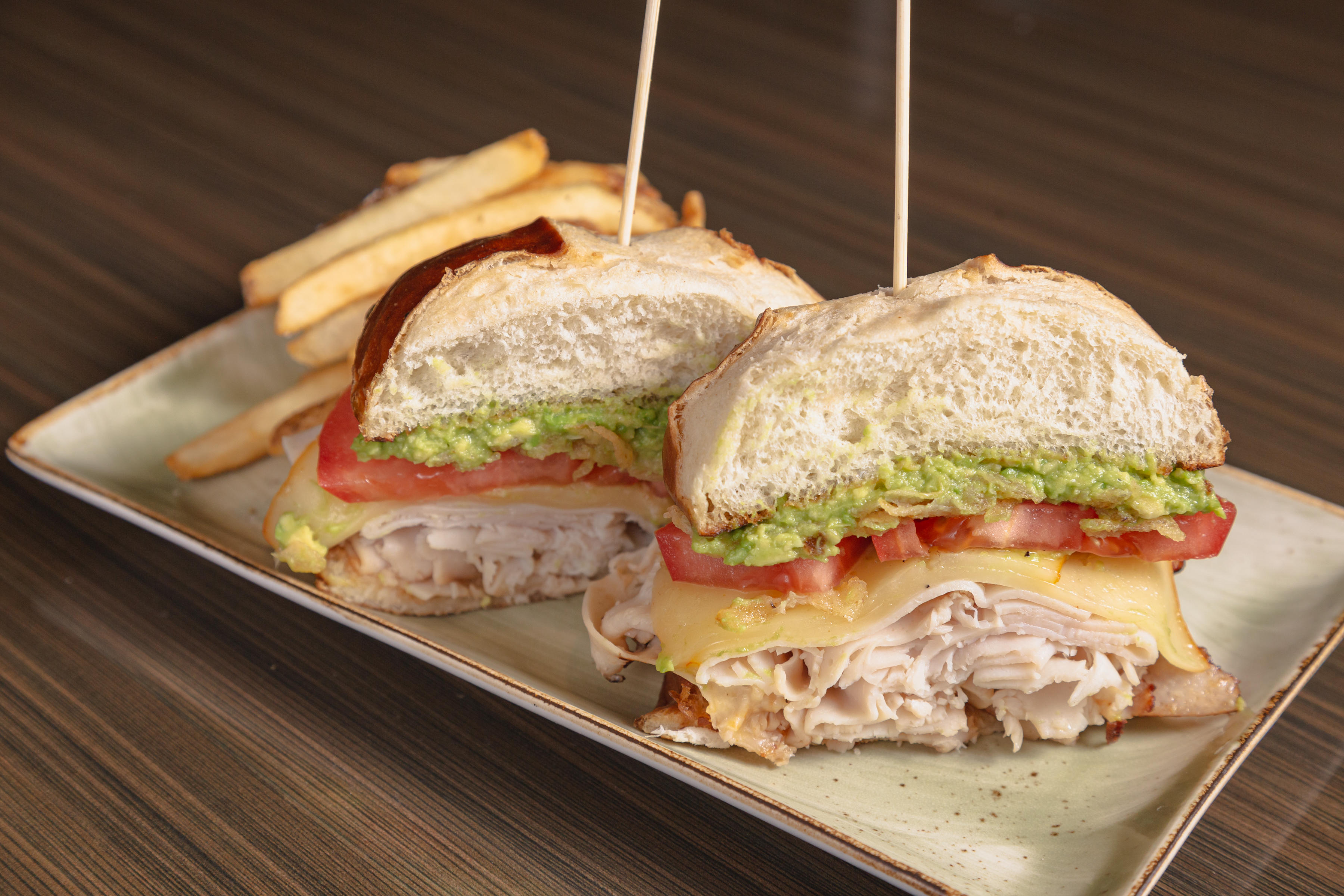 Turkey breast, muenster cheese, grilled tomato, smashed avocado, fried onions, pretzel bun