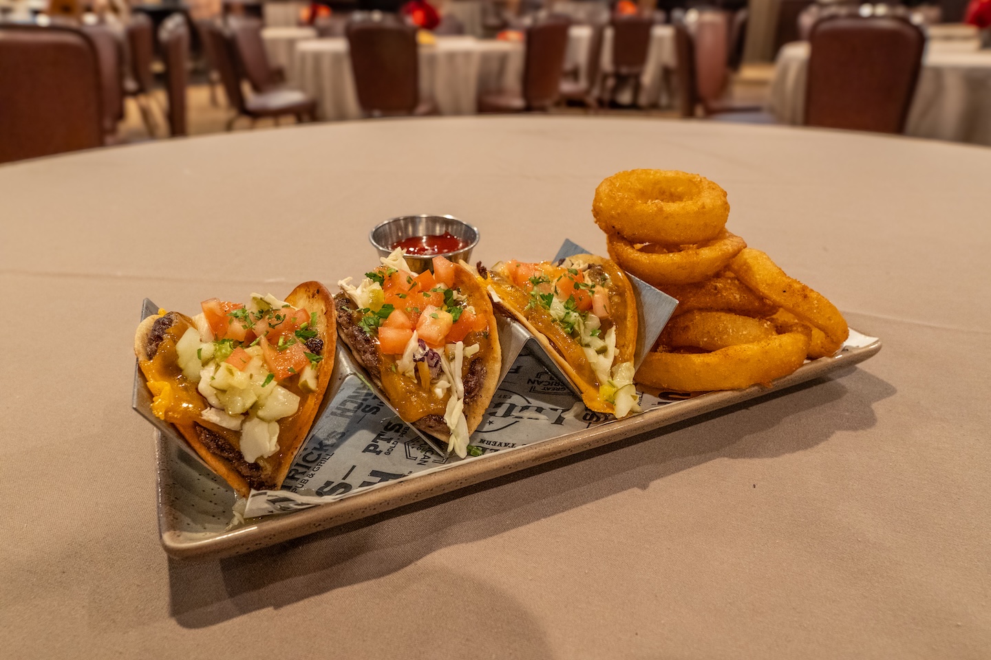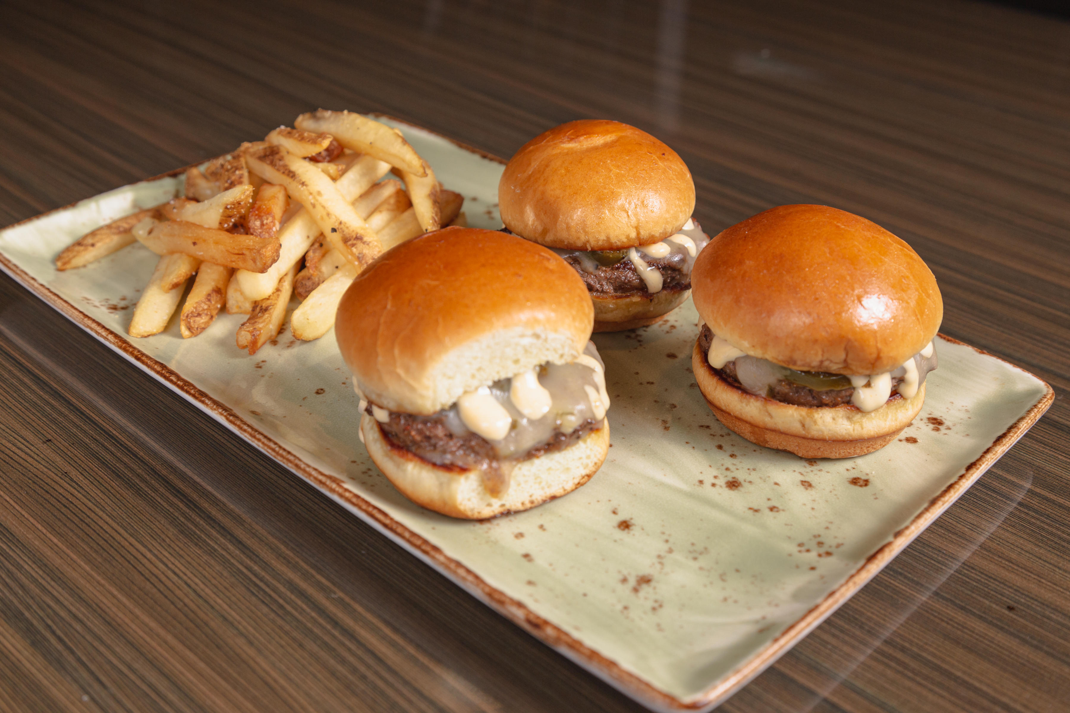 Blackened beef patties, grilled jalapeños, pepper jack cheese, Tabasco mayo sauce, slider buns