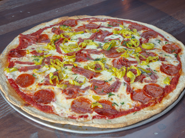 House-made pizza sauce, mozzarella & provolone cheeses, pepperoni, salami, capicola, pepperoncini