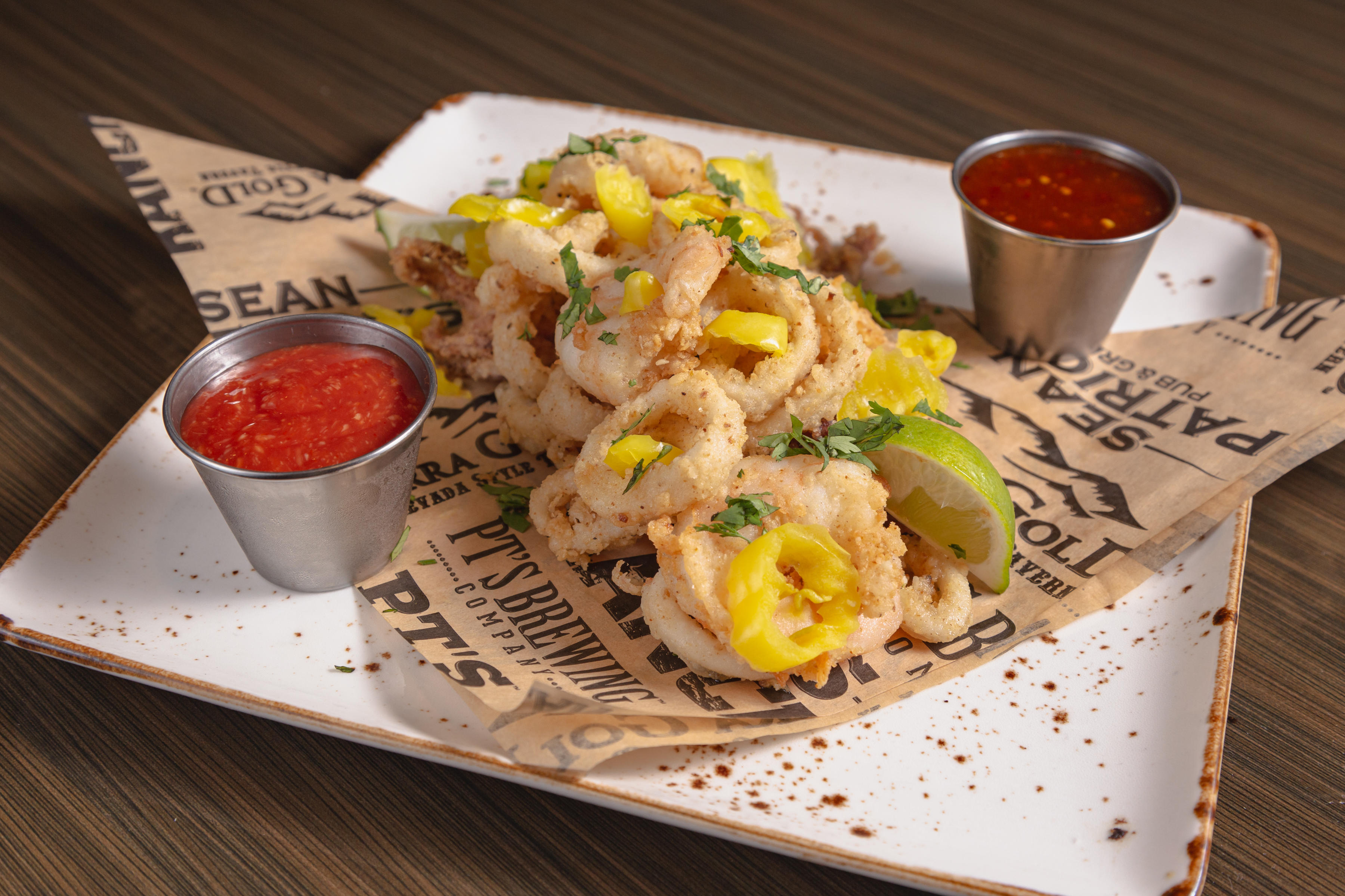 Breaded calamari & shrimp, pepperoncini, cilantro, sweet & spicy dipping sauce, cocktail sauce