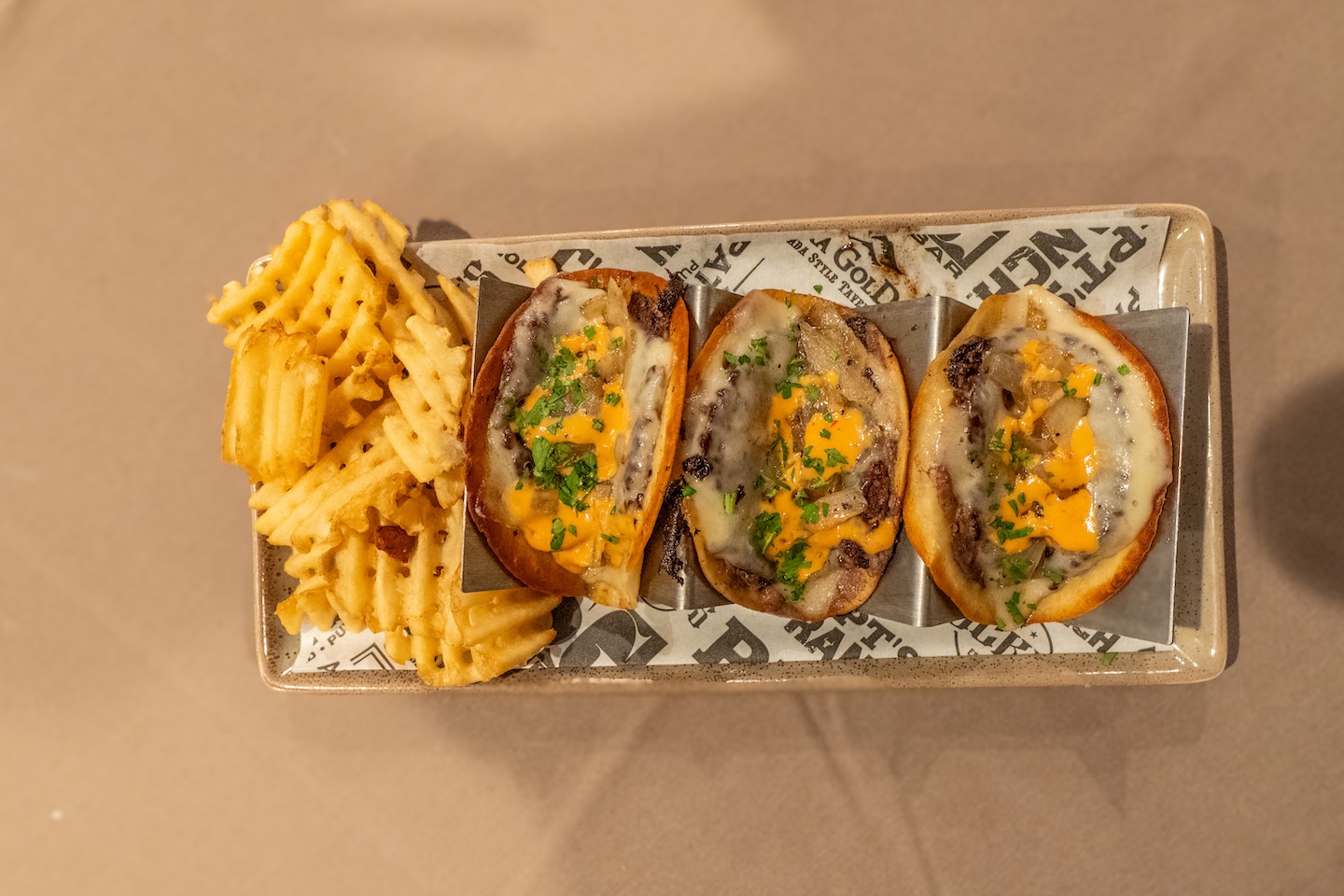 Two quarter pound patties, PT’s signature burger sauce, lettuce, tomato, pickle, red onion, brioche bun