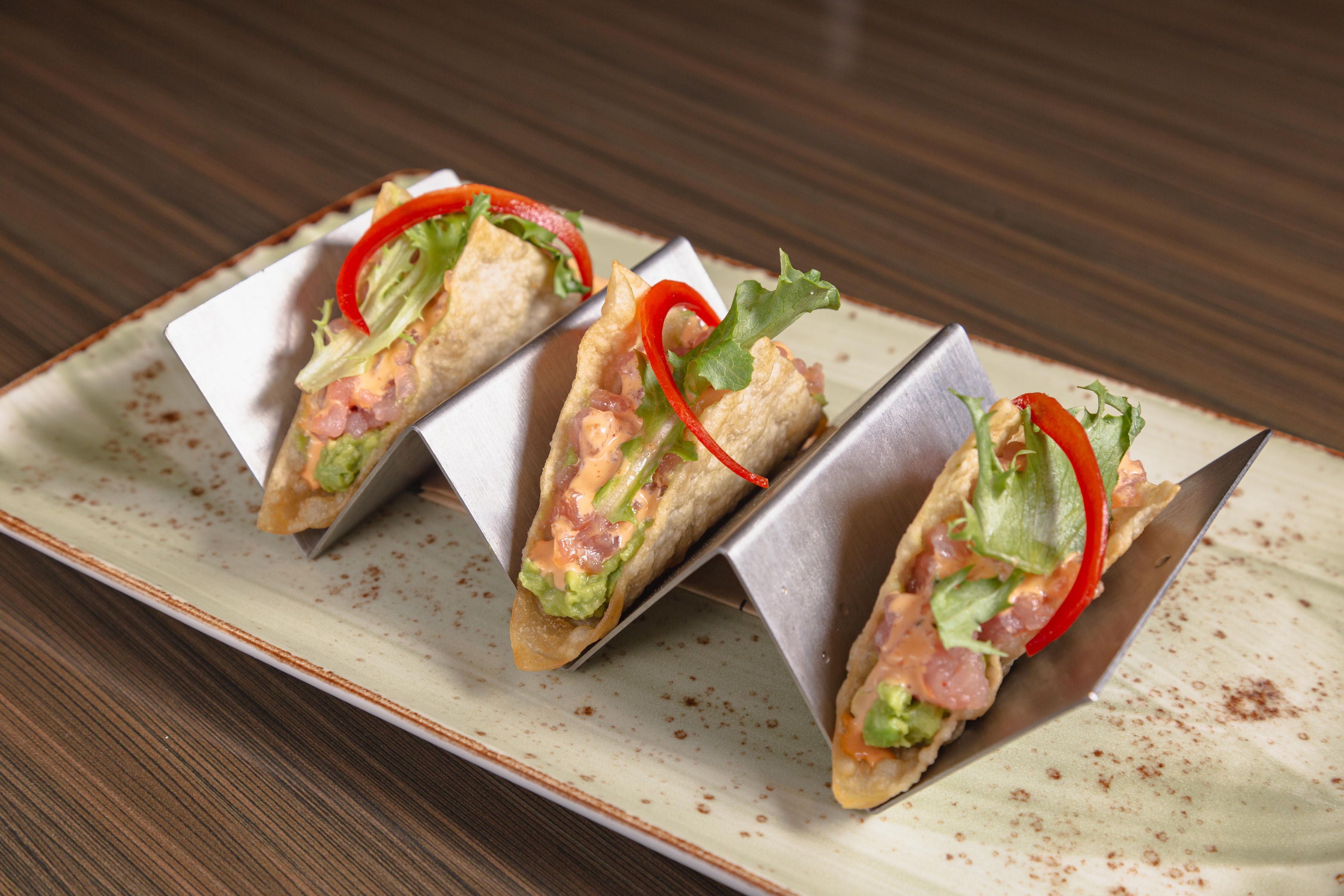 Fried wontons, ahi poke, lime guacamole, spicy mayo, pickled chili